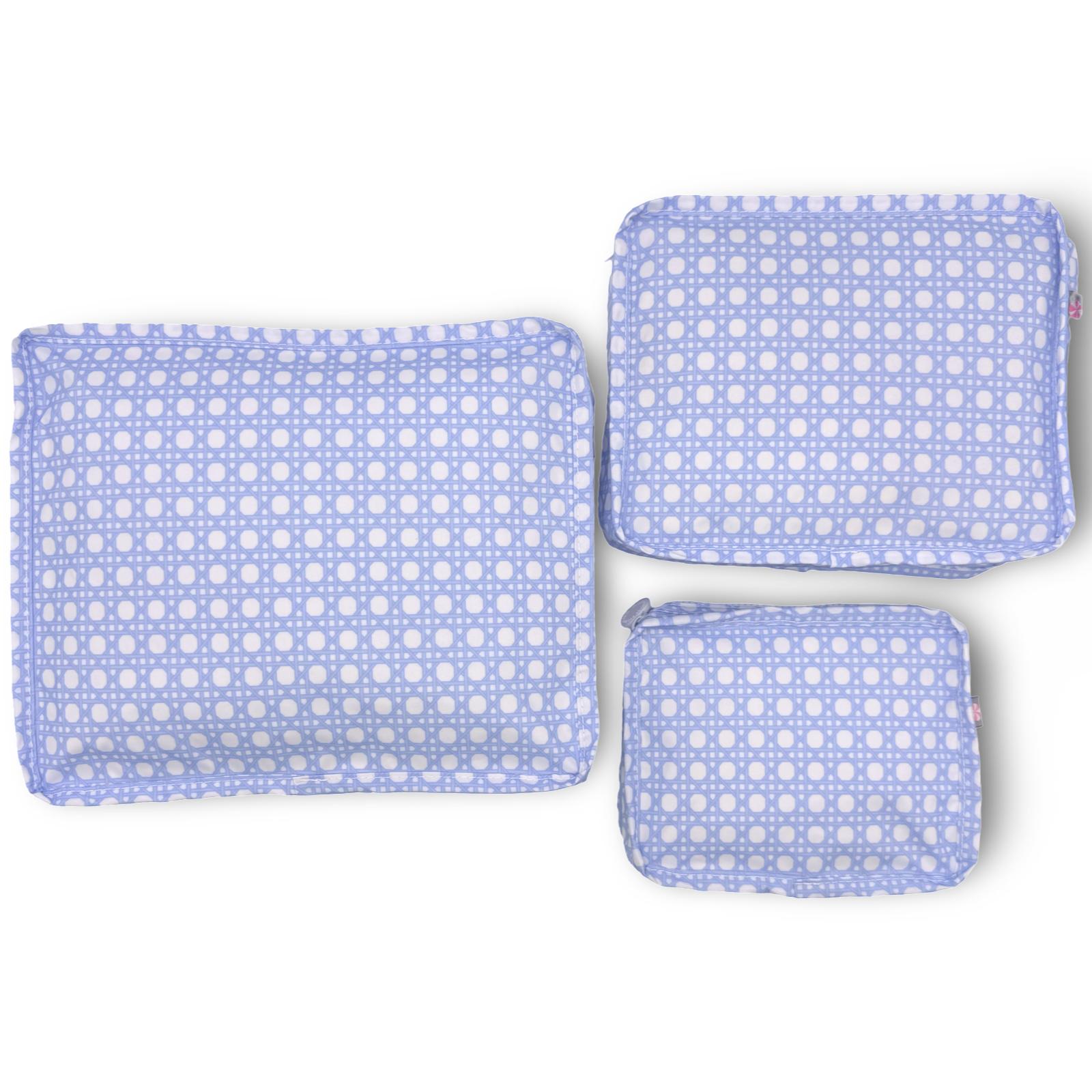 Measurements: Small Pouch (6"x7.5"x2.75"), Medium Pouch (7.5"x9.5"x3.5"), Large Pouch (10"x11.5"3.5")