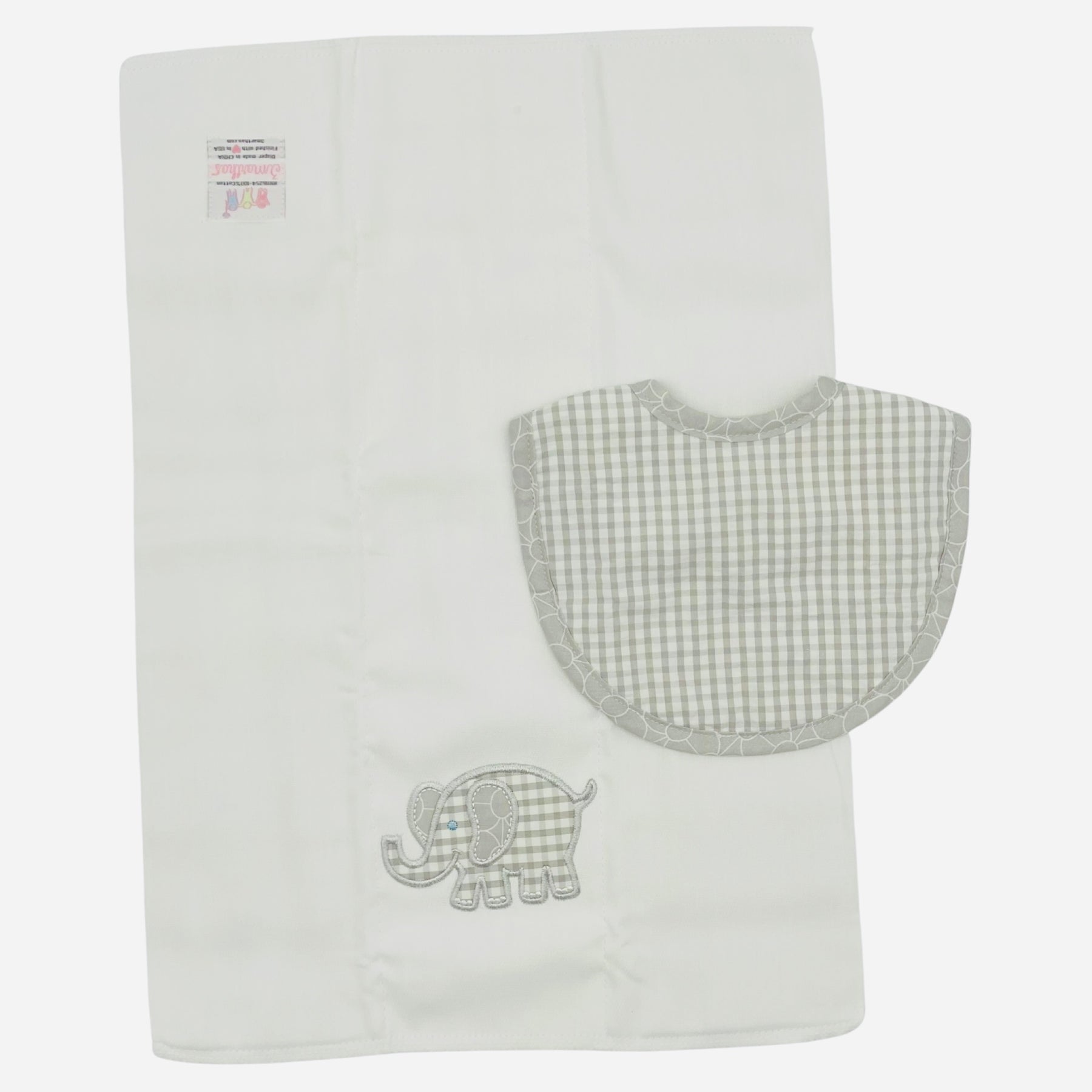 Our best-selling gift set features a super absorbent appliqued burp cloth and a coordinating fabric bib that is backed in 100% thick cotton terry. It comes beautifully packaged in a signature gift box, making it a great gift-on-the-go!