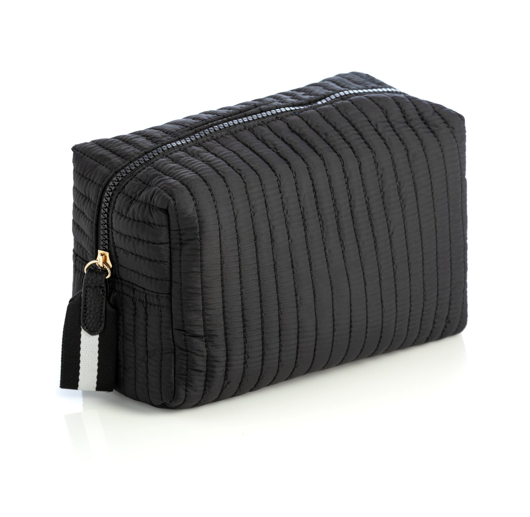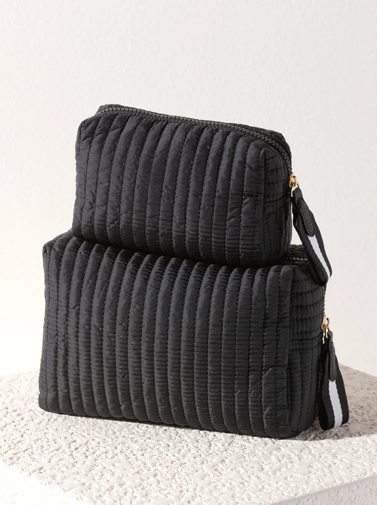 Elevate your on-the-go lifestyle with the Ezra Boxy Cosmetic Pouches, available in two sizes to suit your needs. Whether you opt for the compact convenience of the Small size or the spacious versatility of the Large, both pouches feature a quilted nylon body and a boxy silhouette, perfectly complementing Shiraleah’s Ezra Totes.